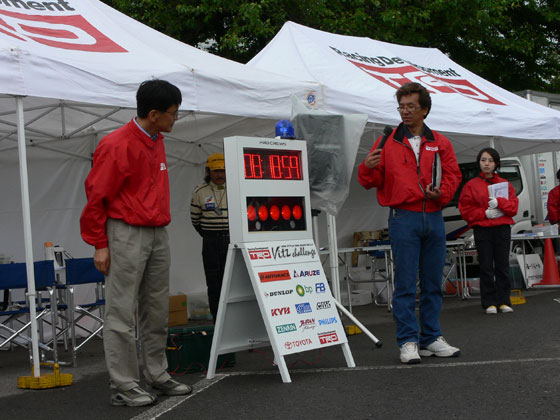 写真は、ドライバーズ・ブリーフィングで、スタート信号