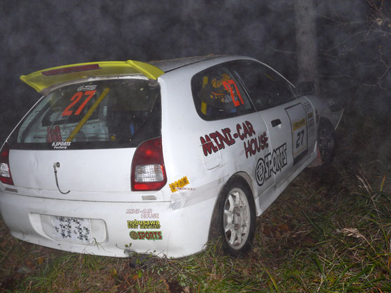 最終SS、追い上げのランサーが一番楽しげに走ってきた。
