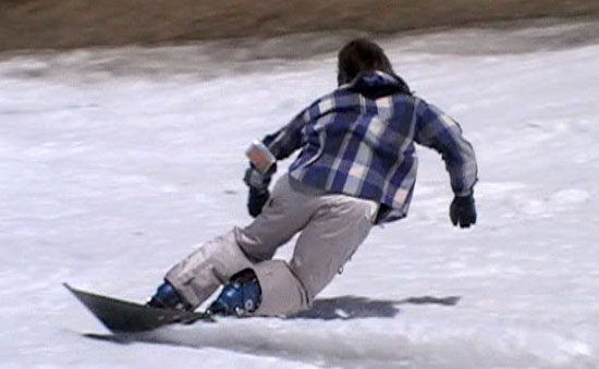 スノーボードでのターンは、車の連続コーナーと同じ。